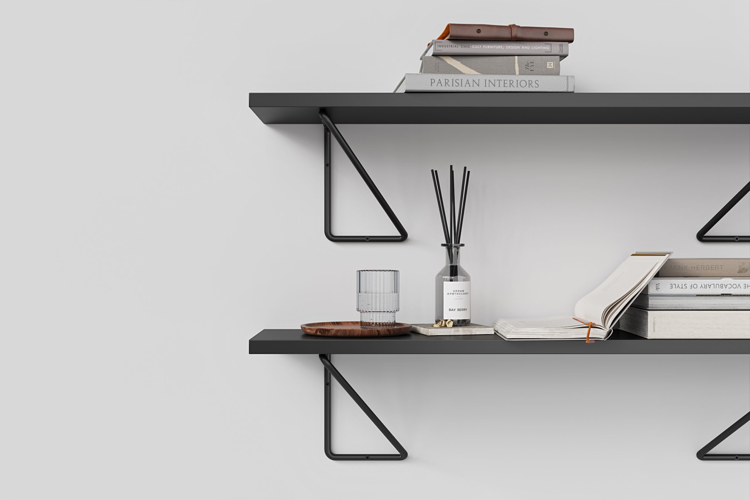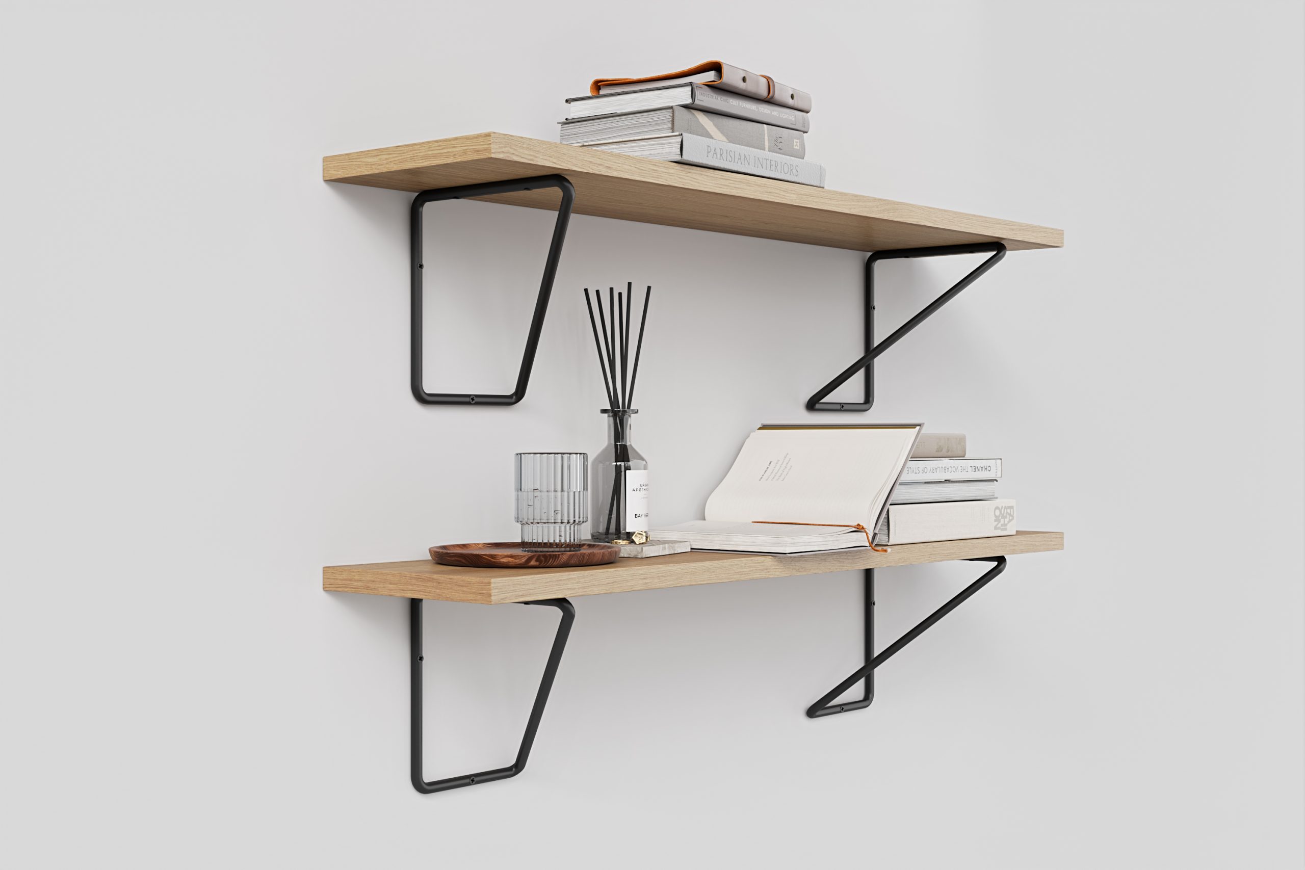 Set of 2 black, steel shelf brackets. Will be perfect fit for Your living room, bedroom, bathroom and garage walls.